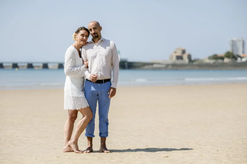 La première journée a débuté par une cérémonie civile à la mairie des Sables-d’Olonne, suivie d’un apéritif dînatoire convivial sur la plage, entourés de leurs proches et amis, dans une ambiance détendue et chaleureuse.